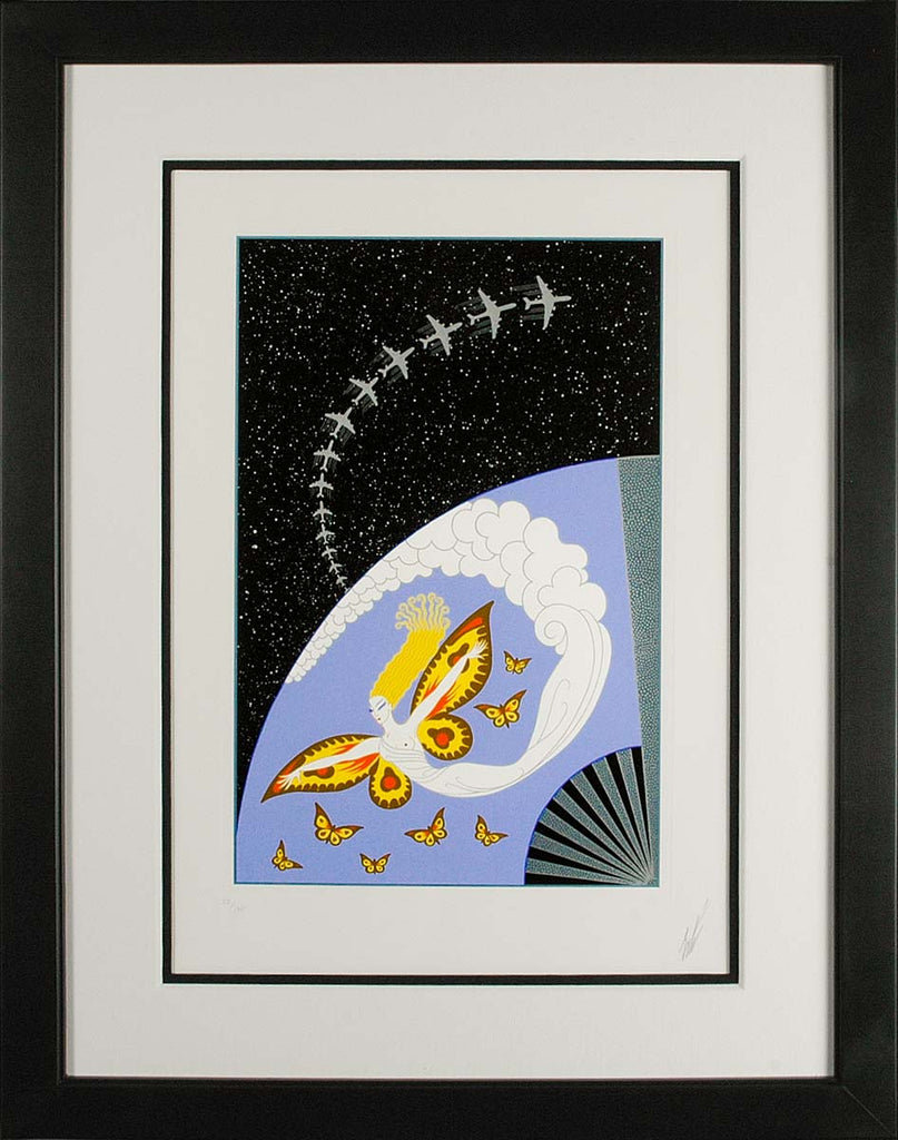 "Air" is a serigraph created by Erté for his 1984 suite 'The Four Elements'. From the edition of 194, the artwork is signed 'Erté' lower right. The image size is 20 x 13" and the artwork is framed in a contemporary black frame. The artwork ships framed and accompanied by a certificate of authenticity.