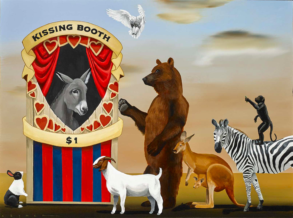 Born and raised in Greenwich, Connecticut, Deyber began drawing at an early age. Art was a necessary means of escape from an otherwise difficult world, one in which he set his mind free to visit the most remote places—a wheat field in South Dakota, the dunes of the Gobi desert, the moons of Jupiter—all within easy reach for a very imaginative young boy. Throughout his paintings, Deyber moves in and out of visual themes and story lines. Compelled to create imagery where he uses a combination of highly stylized composition, light and contrasting colors, his goal is to apply all three skillfully, thereby drawing the viewer into his painting without overpowering or confusing.