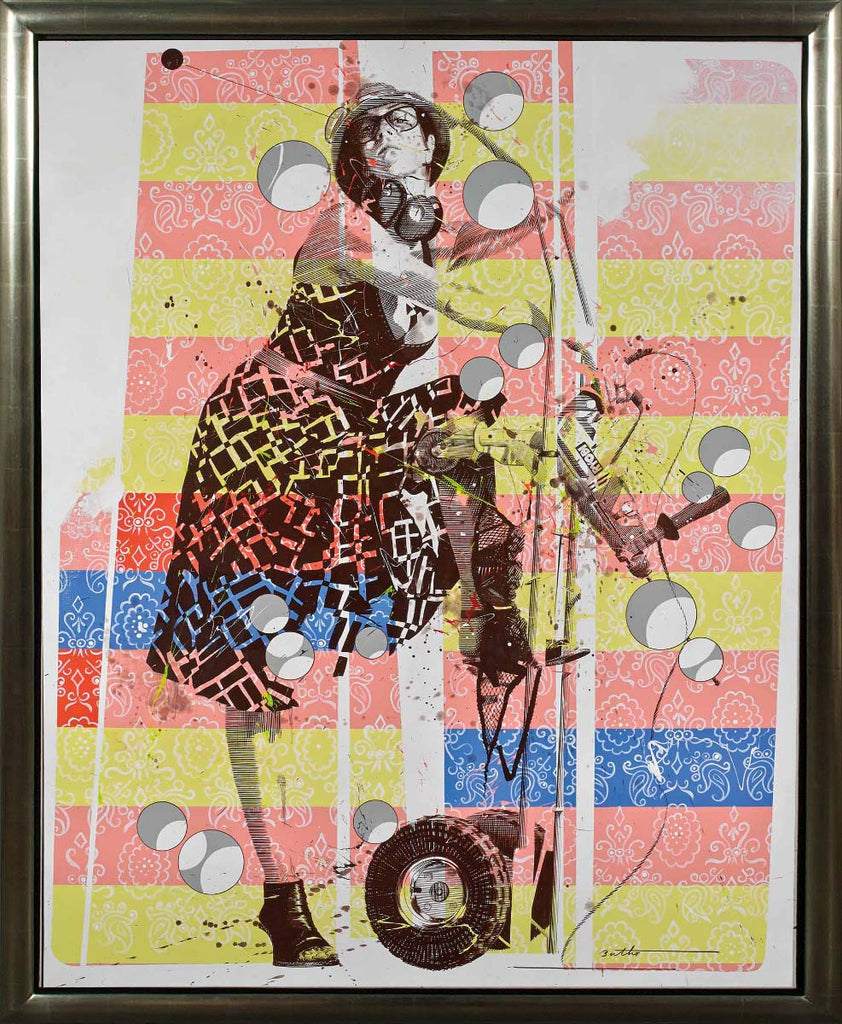 "Joséphine Graspic" is an acrylic on canvas painting created by Philippe Bertho in 2013. The artwork is signed 'Bertho' lower right. The canvas size is 57.5 x 45". The artwork ships framed. Please contact the gallery regarding available frame options.