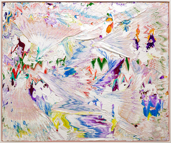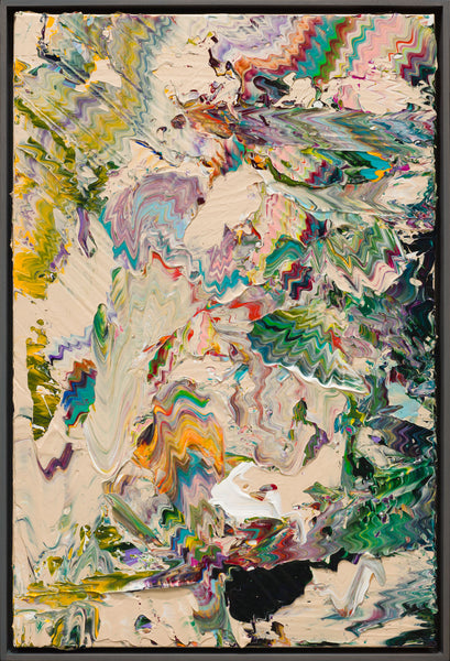 "Bloom" is an acrylic on canvas painting created by Robert Standish in 2022. The painting is signed, titled and dated on verso. The canvas size is 48 x 72" and the artwork is framed in a contemporary white frame. The artwork ships framed.