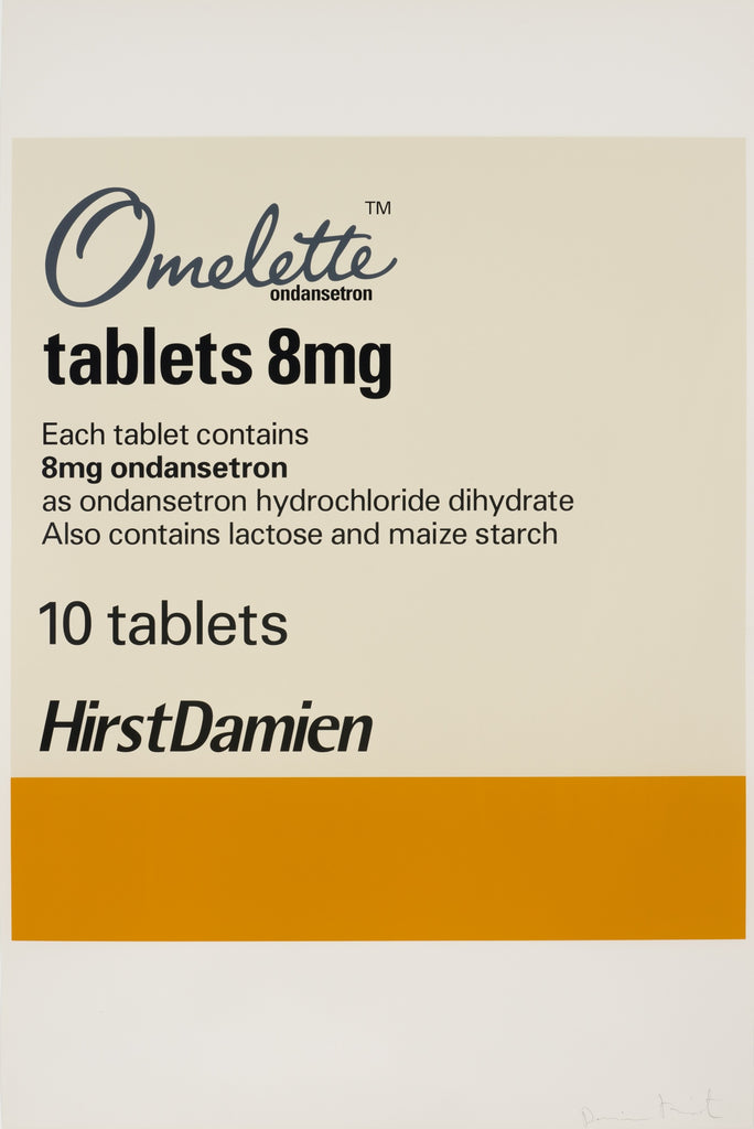 "Omelette" is a screenprint in colors on Somerset Satin Wove Paper, created by Damien Hirst as a part of his series "The Last Supper" in 1999. From the edition of 150, the artwork is signed 'Damien Hirst' lower right. The sheet size is 60.37 x 40" and the artwork is framed in a contemporary light wood frame. The artwork ships framed and is accompanied by a certificate of authenticity.