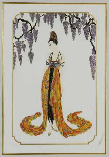 Erté was born Romain de Tirtoff in St. Petersburg, Russia on November 23rd, 1892 and was raised amidst Russia's social elite. At the age of five he created an evening gown for his mother and managed to persuade the adults to craft it, they were astounded by the results. In 1912, Romain left St. Petersburg for Paris at the age of nineteen with the aim of becoming an artist. After working with Paul " Le Magnifique" Poiret on several theatrical productions Romain, still under the pseudonym of Erte, began to work more independently. He hand-crafted original costume and fashion designs for many of the era’s most renowned actresses, including Joan Crawford, Lillian Gish, Marion Davies, Anna Pavlova, Norma Shearer, and others. His masterpieces for the stage included extravagant production designs at venues such as New York’s Radio City Music Hall, the Casino de Paris, and the Paris Opera. In 1915 he began his long professional relationship with Harper's Bazaar and created 240 covers for the esteemed magazine. For 6 months in 1916, Erté simultaneously worked with Vogue as well. As a result of his highly publicized success, Erté would later be called the father of the ‘Art Deco’ movement.