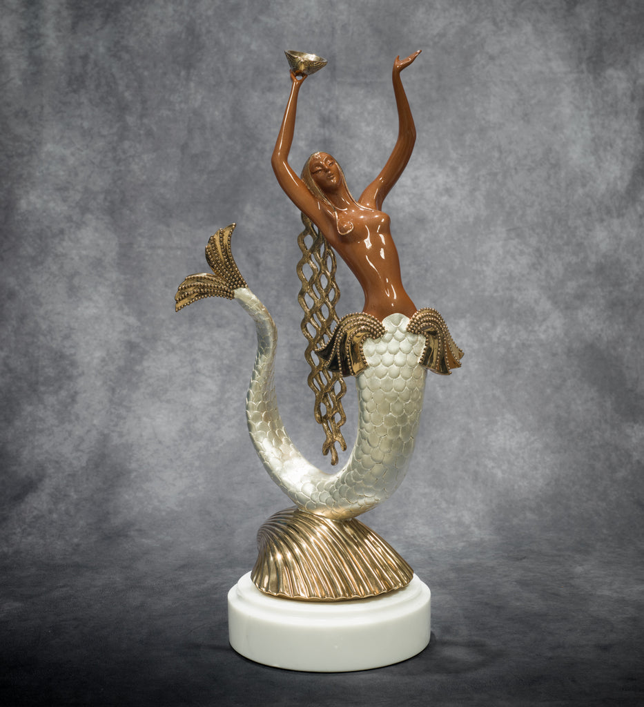 In Mermaid, we have a fine example of how Erté carried the technical possibilities of the sculpture medium to a new level. This attention to detail added to his legend as one of the Twentieth Century’s foremost artist-designers, with work represented in the collections of the Metropolitan Museum of Art, New York, the Museum of Modern Art, New York, the Paris Opera House, the Smithsonian Institution and the Victoria and Albert Museum, London.