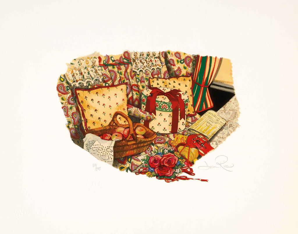 "The Elegance of Travel (Places Suite)" is a serigraph created by Susan Rios. The image size is 8.75 x 12.25 -inch. The artwork ships framed, signed and with a certificate of authenticity.