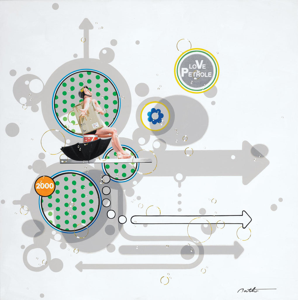 "Love Petrole 2" is an acrylic on canvas created by Philippe Bertho in 2010. The image size is 27 x 27.5- inch. The framed size is 39.25 x 37.25 - inch. "Love Petrole 2" comes signed, and with a certificate of authenticity.
