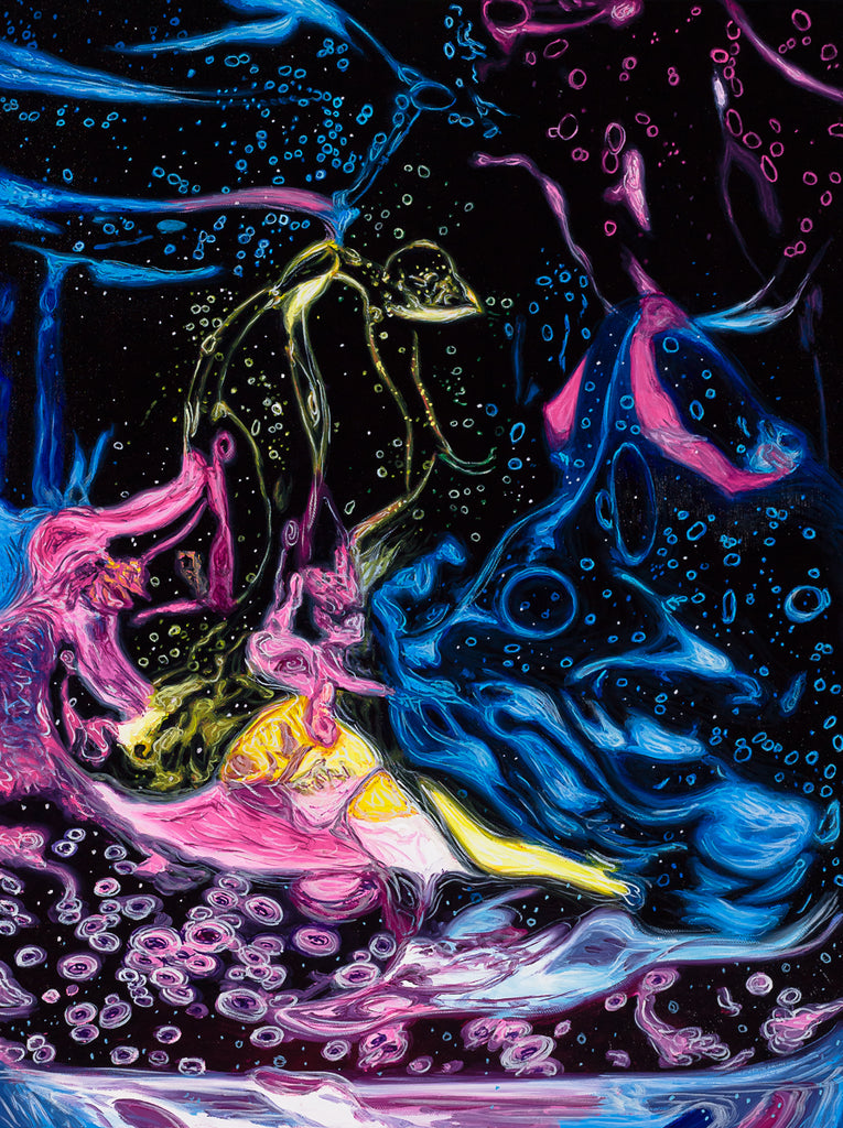 "Polychrome Gel #15" is an oil on canvas painting created by Ben Weiner in 2020. The artwork is signed, titled and dated 'Ben Weiner 2020 Polychrome Gel #15' on verso. The canvas size is 24 x 18" and the artwork is framed in a contemporary white frame. The artwork ships framed.