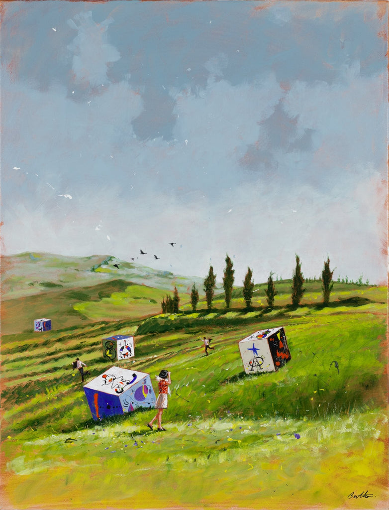 Philippe Bertho is classically trained having enrolled in art school in Reims, France in the early 1990s. There, he spent considerable time studying decorative trompe l’oeil painting. Tromp l’oeil (“to fool the eye”) is a technique used by artists to create the illusion of a 3rd dimension on a flat surface. It is obvious from Bertho’s artwork that he fools much more than the eye…he draws one in by the heart and also quite frequently by the funny bone. Despite his ability to perfectly render reproductions of masterworks, Bertho was drawn to the world of fantasy and illusion. As his style developed, he drew inspiration from renowned contemporary trompe-l’oeil artist, Jacques Poirier. In his early work, Bertho exhibited ingenuity by including unusual materials in his paintings. Employing objects that other’s found useless – corrugated iron, rusted metal boxes, old light bulbs – he was fascinated with his ability to bring his art alive by creating dimension – either by the addition of these items directly onto his canvas or later through the technique of trompe l’oeil.