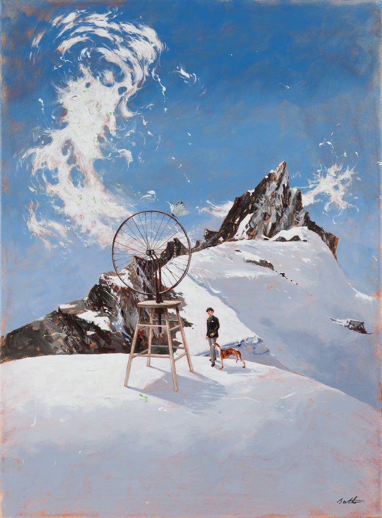 Philippe Bertho is classically trained having enrolled in art school in Reims, France in the early 1990s. There, he spent considerable time studying decorative trompe l’oeil painting. Tromp l’oeil (“to fool the eye”) is a technique used by artists to create the illusion of a 3rd dimension on a flat surface. It is obvious from Bertho’s artwork that he fools much more than the eye…he draws one in by the heart and also quite frequently by the funny bone. Despite his ability to perfectly render reproductions of masterworks, Bertho was drawn to the world of fantasy and illusion. As his style developed, he drew inspiration from renowned contemporary trompe-l’oeil artist, Jacques Poirier. In his early work, Bertho exhibited ingenuity by including unusual materials in his paintings. Employing objects that other’s found useless – corrugated iron, rusted metal boxes, old light bulbs – he was fascinated with his ability to bring his art alive by creating dimension – either by the addition of these items directly onto his canvas or later through the technique of trompe l’oeil.