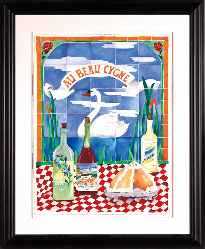 "Au Beau Cygne" is A watercolor on paper created by Linnea Pergola. The image size is 30" x 23" -inch. The artwork ships framed, signed and with a certificate of authenticity. The artwork is framed with the latest archival framing techniques, and it is accompanied by a certificate of authenticity.