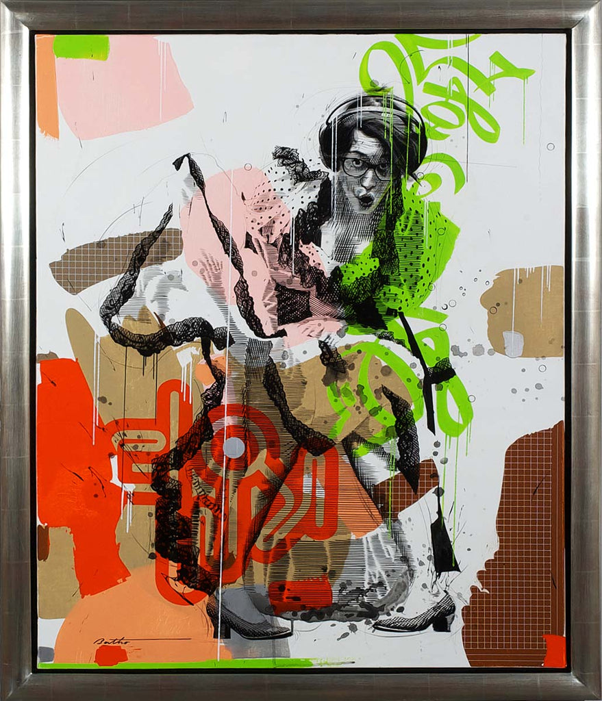 "Charlotte Tuloupe" is an acrylic on canvas painting created by Philippe Bertho in 2014. The painting is signed 'Bertho' lower left. The canvas size is 39.25 x 31.75". The artwork ships framed. Please contact the gallery regarding available frame options.
