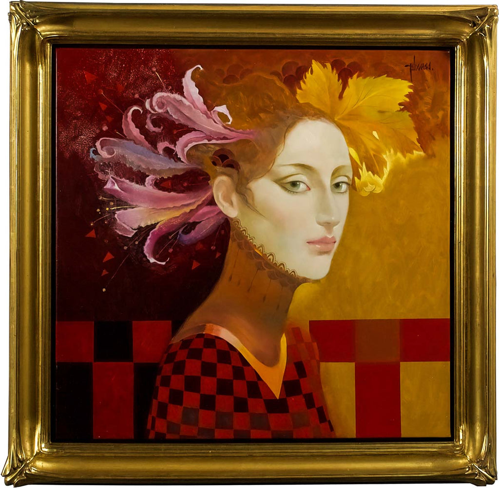 "Flora" is an oil on canvas painting created by Felix Mas in 2014. The artwork is signed 'Felix Mas' upper right corner. The canvas size is 24 x 24". The artwork ships framed. Please contact the gallery regarding available frame options.