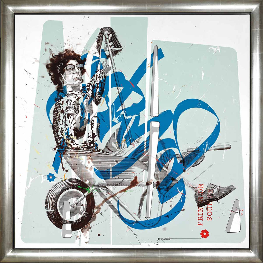 "Jean-Paul Ciconex" is an acrylic on canvas painting created by Philippe Bertho in 2013. The painting is signed 'Bertho' lower right. The canvas size is 39 x 39". The artwork ships framed. Please contact the gallery regarding available frame options.