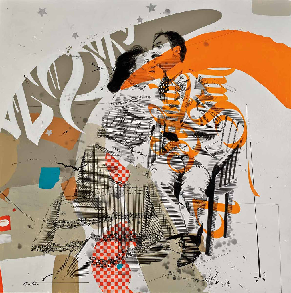 "Monsieur et Madame Hope" is an acrylic on wood board painting created by Philippe Bertho in 2014. The artwork is signed 'Bertho' lower left. The image size is 31.5 x 31.5". The artwork ships framed. Please contact the gallery regarding available frame options.