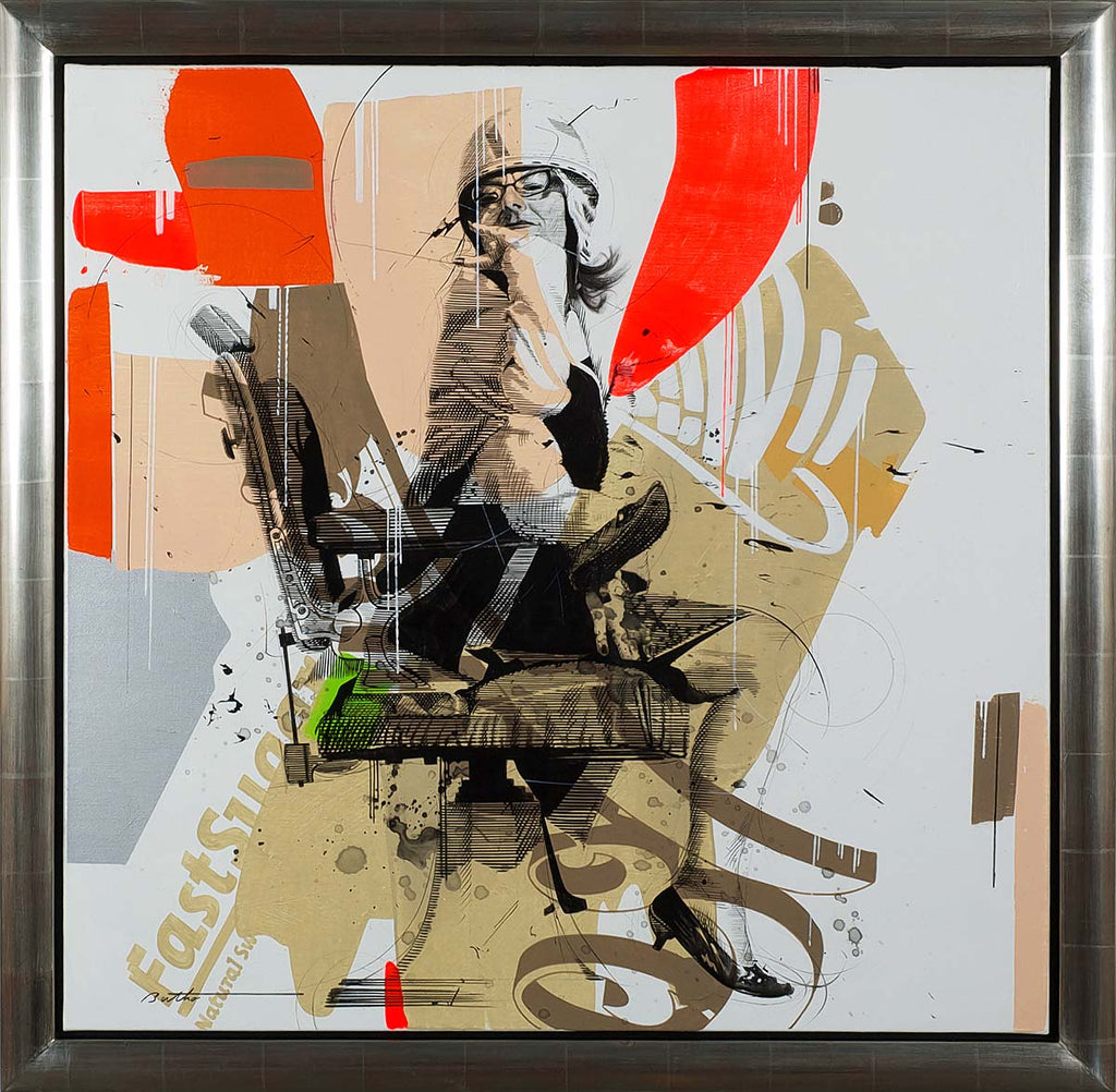 "Odile Yaouane" is an acrylic on canvas painting created by Philippe Bertho in 2014. The painting is signed 'Bertho' lower left. The canvas size is 31.5 x 31.5". The artwork ships framed. Please contact the gallery regarding available frame options.