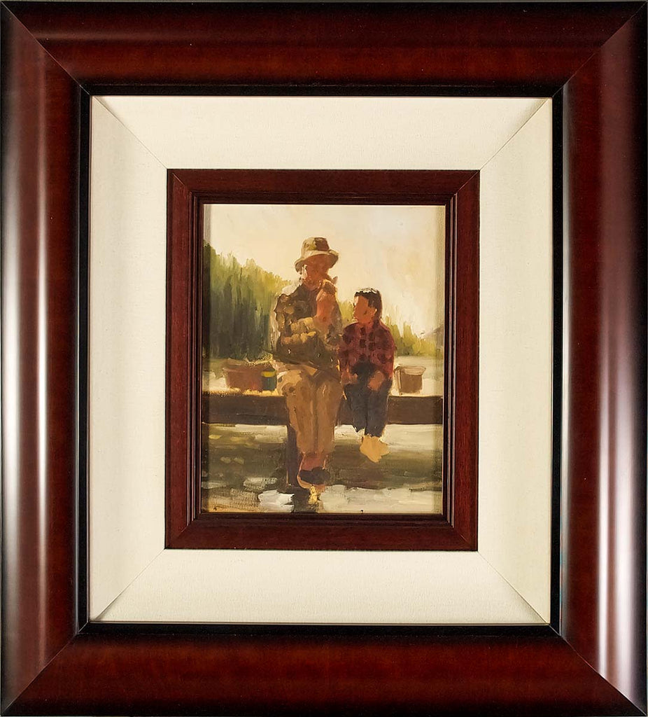 "The Fishing Lesson" is an oil on canvas created by Brent Benger. The image size is 10 x 8 inch. The artwork ships framed, signed and with a certificate of authenticity.