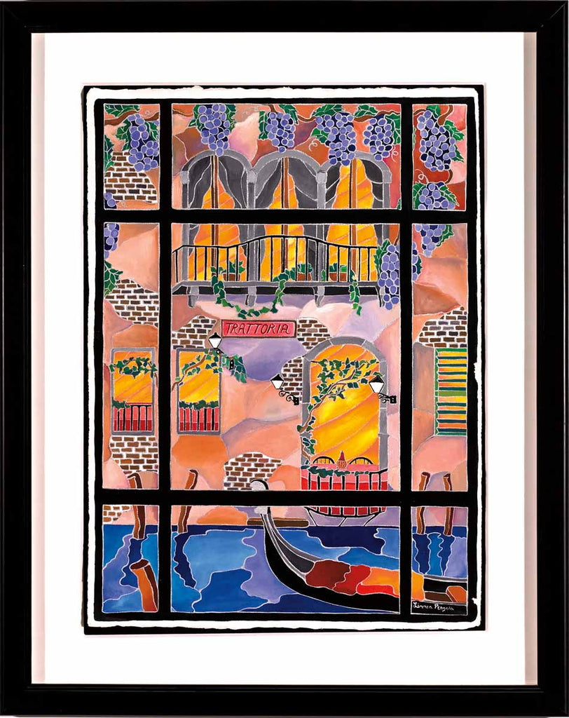 "Trattoria" is an watercolor on paper created by Linnea Pergola . The image size is 30 x 23. The artwork ships framed, signed and with a certificate of authenticity.