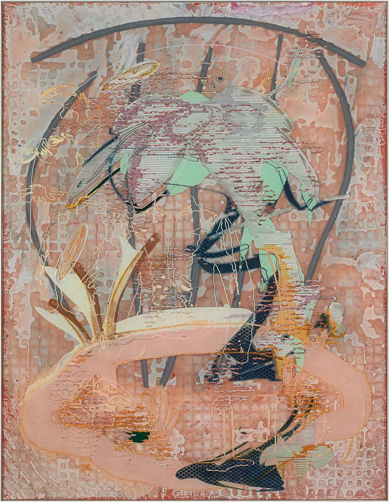 Darren Goins was born in 1984 in North Carolina but now resides in Los Angeles, California. Goins is well known for his unique style and aesthetic, which involves the combination of digital technologies and traditional painting methods to create abstract paintings. Working with a wide range of media–printmaking, painting, drawing, sculpture, neon–Goins’ art manages to capture the anxiety of the Information Age in both color and form.