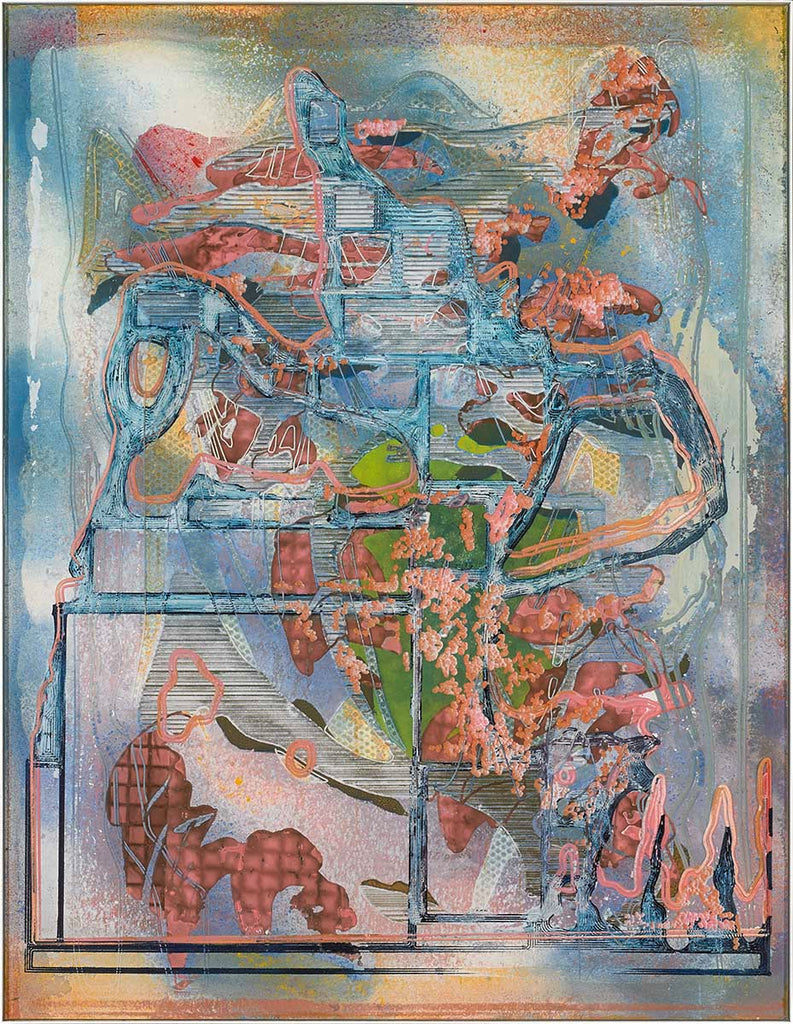 Darren Goins was born in 1984 in North Carolina but now resides in Los Angeles, California. Goins is well known for his unique style and aesthetic, which involves the combination of digital technologies and traditional painting methods to create abstract paintings. Working with a wide range of media–printmaking, painting, drawing, sculpture, neon–Goins’ art manages to capture the anxiety of the Information Age in both color and form.