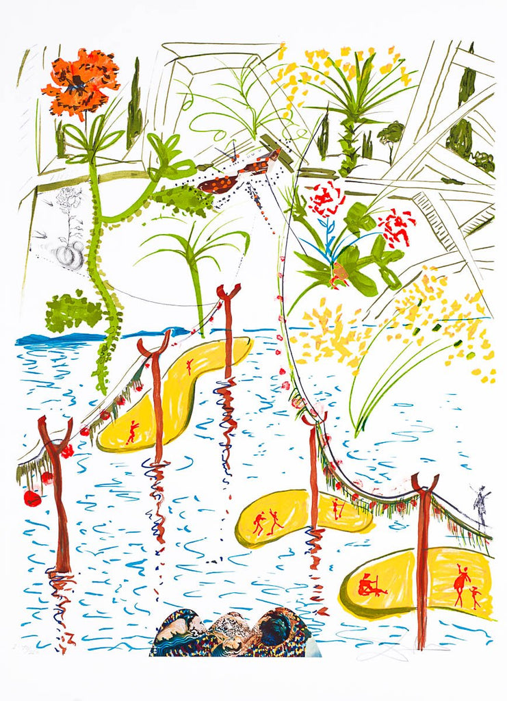 "Biological Garden (Imaginations and Objects of the Future)" is a lithograph and etching created by Salvador Dal’ in 1975. The image size is 27.25 x 21 -inch. The artwork ships framed with a certificate of authenticity.