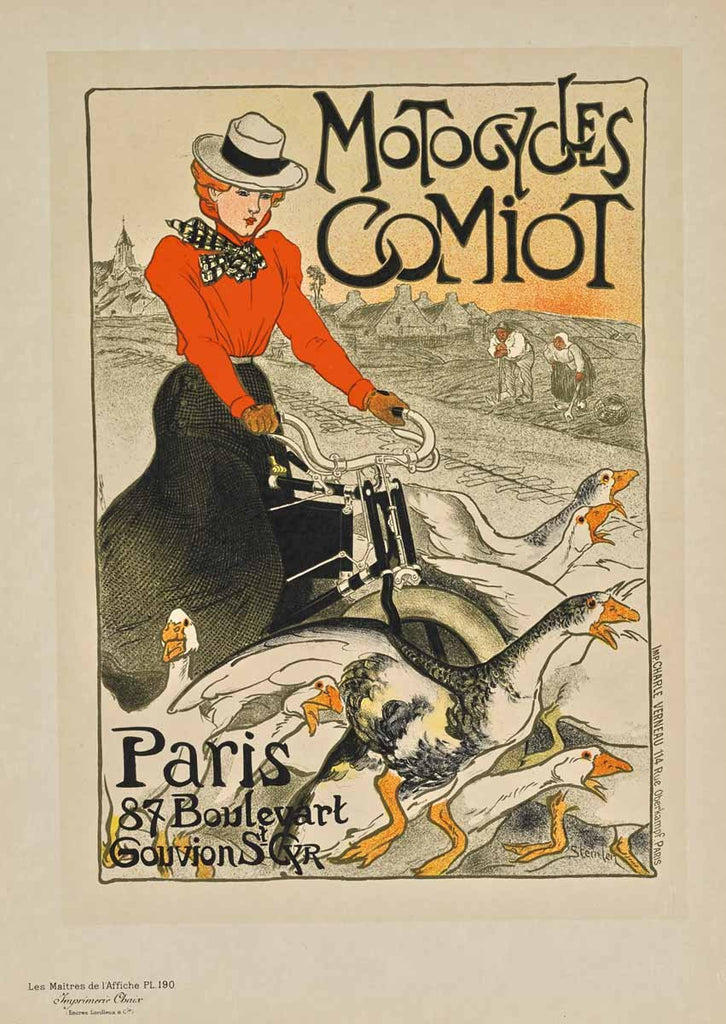 “Les Maitres De L’Affiche” (The Masters of the Poster) is a phrase that refers to one of the most prestigious and influential art publications in history. The 256 color plates that make up the suite represent a wide-ranging selection of outstanding original posters from the turn of the twentieth century when this popular art form first reached its peak. Early printed posters were very text-heavy, with relatively few illustrations. After all, they were created to advertise products, and adding an illustration to an advertisement in the mid-1800s was not commonplace. However, during the second half of the nineteenth century, when all types of commercial products were aesthetically upgraded, serious artists began to see the new possibilities in the poster medium. By linking their imagery to modern commerce, the thinking was that each would be enhanced by the value of the other.
