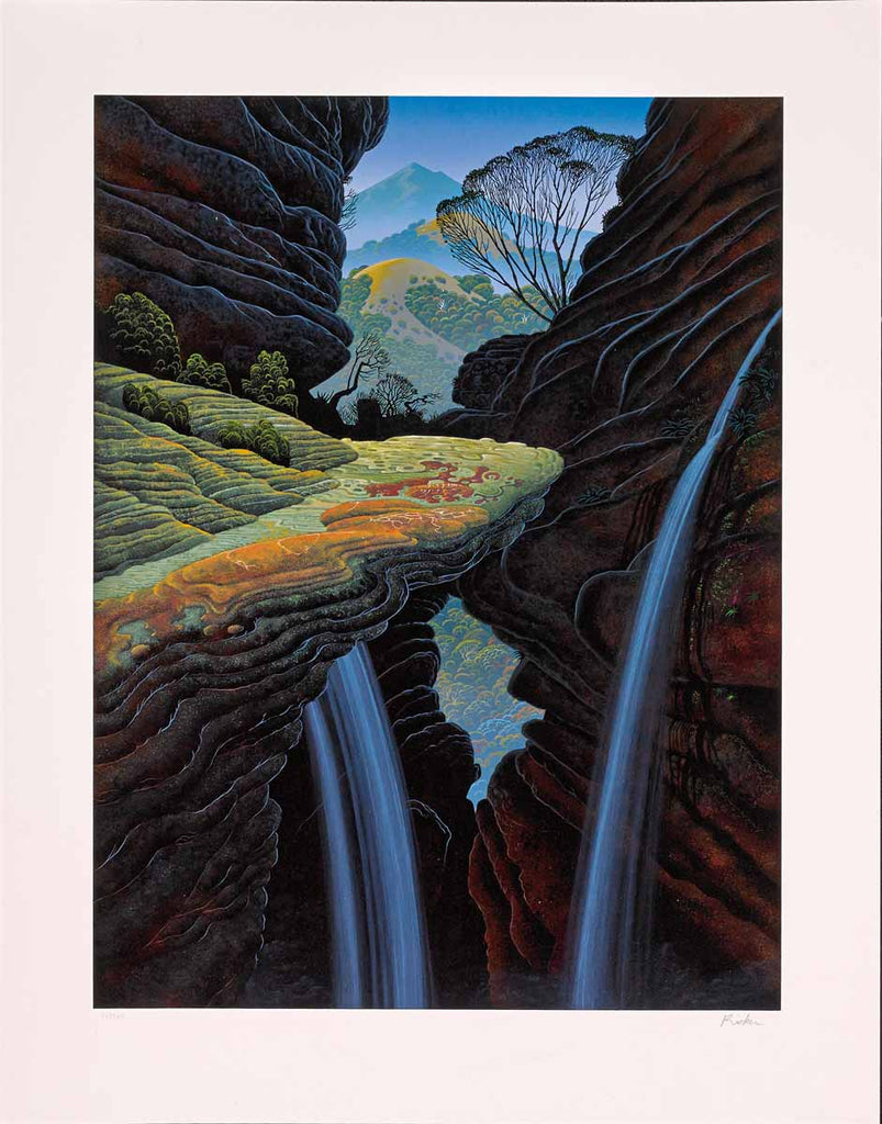 "Canyon Rock" is a serigraph on paper created by Bruce Ricker. The image size is 24 x 18 - inch. The artwork ships framed, signed and with a certificate of authenticity.