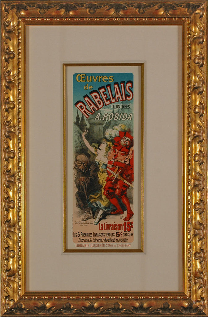 “Works of Rabelais” was created by Jules Cheret the ideator of “Les Maitres De L’affiche”. “Works of Rabelais” is a 14 x 5.5 – inch original stone lithograph created in 1898.
