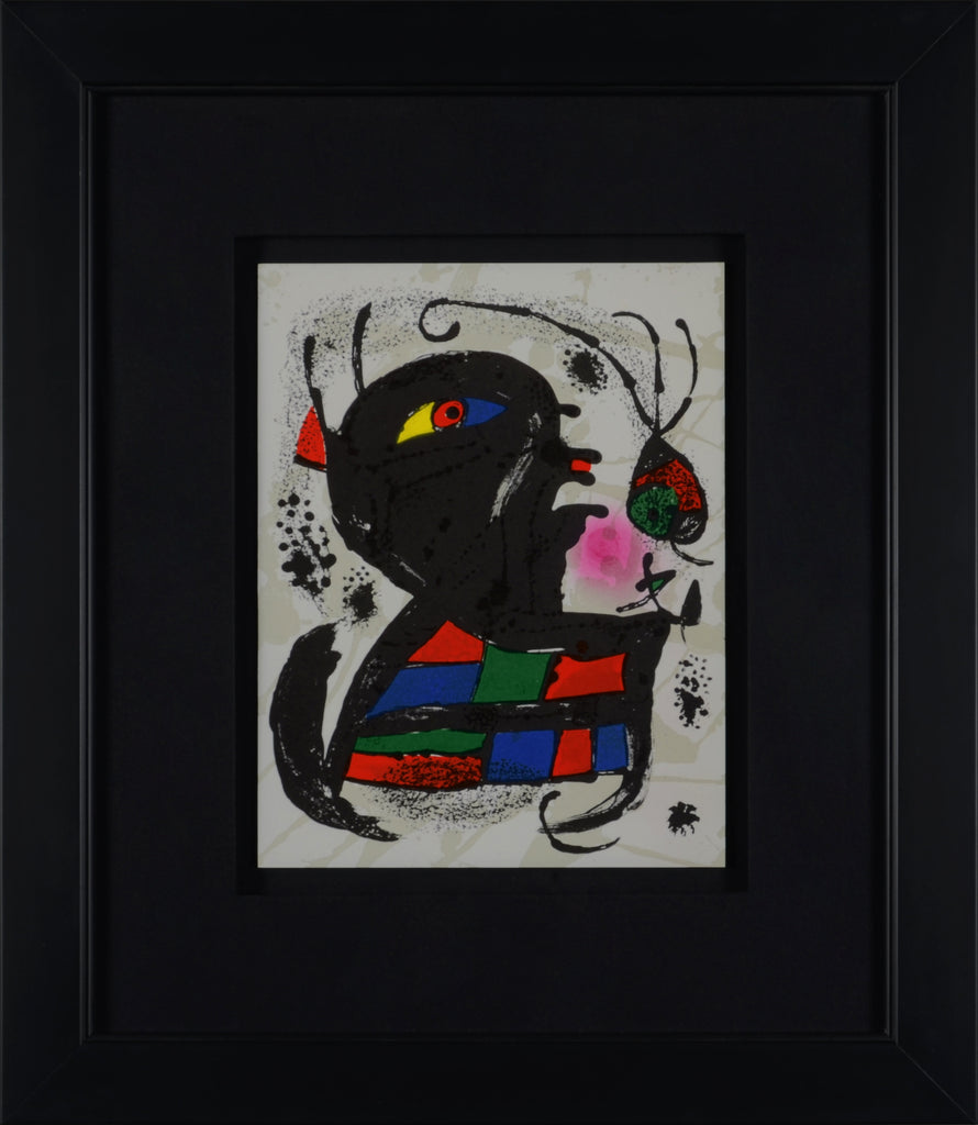 Joan Miró signature biomorphic forms, geometric shapes, and semi-abstracted objects are expressed in multiple media, from ceramics and engravings to large bronze installations. Untitled (Lithographe III, M.1117) is a lithograph. The image size is 13 x 10 — inches.Miró often worked with a limited palette, yet the colors he used were bold and expressive. Miró’s work is found in collections all around the world, including the Museum of Modern Art, Tate Britain, and the Reina Sofia in Madrid, among others. Miró’s mature style evolved from the tension between his fanciful, impulsive behavior and the harsh reality of modern life. He worked extensively in lithography and produced an array of murals, tapestries, and sculptures for public spaces. Despite his fame, Miró, an introvert, continued to devote himself exclusively to looking and creating.