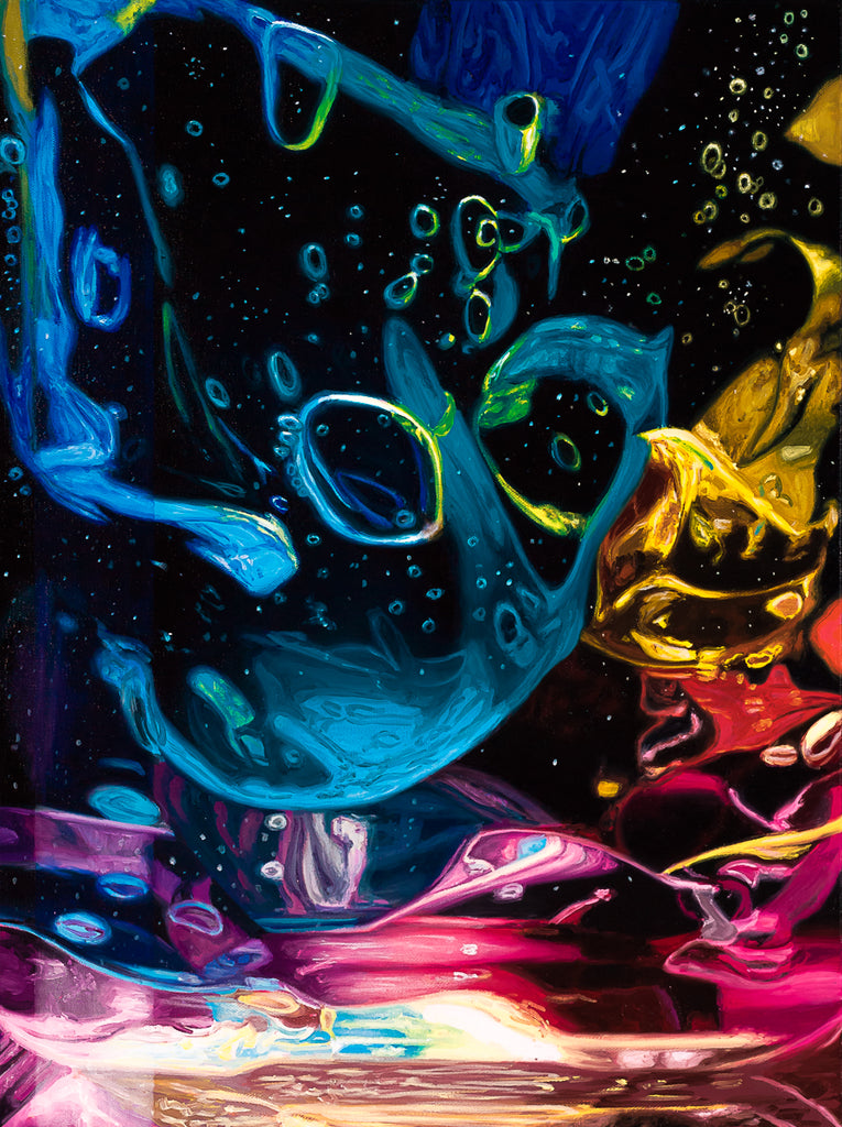 "Polychrome Gel #6" is an oil on linen painting created by Ben Weiner in 2019. The artwork is signed, titled and dated 'Ben Weiner Polychrome Gel #6 2019' on verso. The canvas size is 24 x 18" and the artwork is framed in a contemporary white frame. The artwork ships framed.