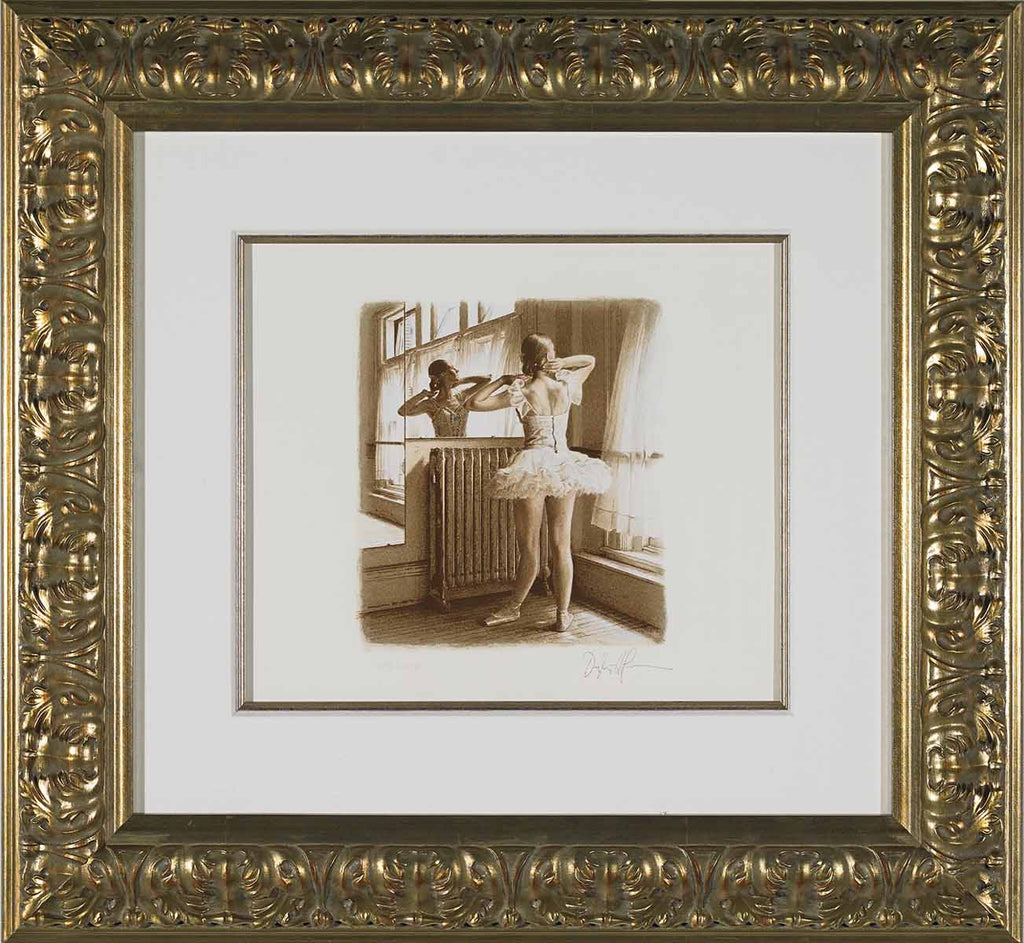 Douglas Hofmann was born in Baltimore, Maryland in 1945 and began his training in art after high school at the Maryland Institute of Art. During his first year there he discovered Joseph Sheppard who would be significant mentor and influence throughout his career. He began studying with Sheppard, taking on anatomy, drawing and painting from the model, all of which were new to Hofmann. There he also discovered the Maroger method, which enables the artist to use thin layers of paint and techniques similar to those of the Old Masters. Through his burgeoning interest in the Old Masters, Hofmann began to develop his individual taste. Emulating Vermeer, he painted situations from his home and studio using his wife and children as his models. Hofmann later expanded his subject matter to include his memorable nudes and his much-loved ballet works. Though his subjects have changed over the years, women have always dominated his panels and prints.