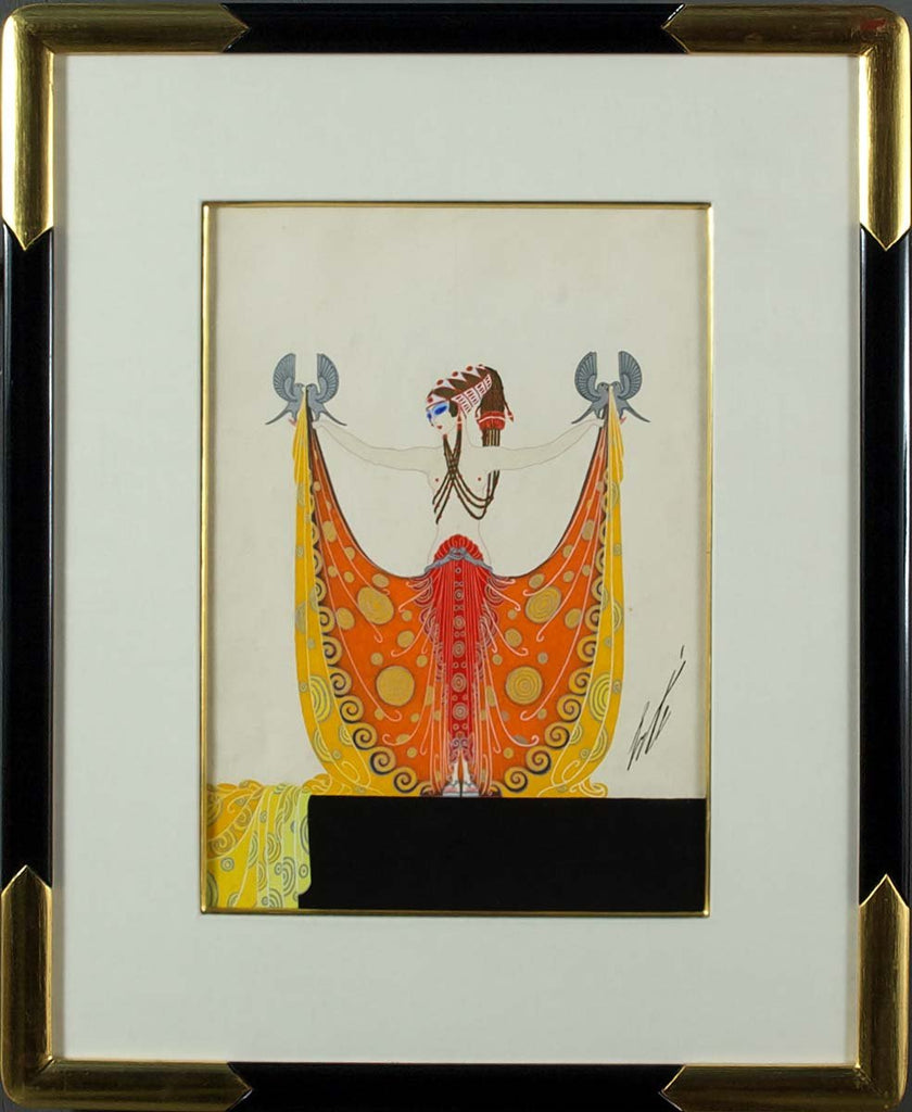 Erté was born Romain de Tirtoff in St. Petersburg, Russia on November 23rd, 1892 and was raised amidst Russia's social elite. At the age of five he created an evening gown for his mother and managed to persuade the adults to craft it, they were astounded by the results. In 1912, Romain left St. Petersburg for Paris at the age of nineteen with the aim of becoming an artist. After working with Paul " Le Magnifique" Poiret on several theatrical productions Romain, still under the pseudonym of Erte, began to work more independently. He hand-crafted original costume and fashion designs for many of the era’s most renowned actresses, including Joan Crawford, Lillian Gish, Marion Davies, Anna Pavlova, Norma Shearer, and others. His masterpieces for the stage included extravagant production designs at venues such as New York’s Radio City Music Hall, the Casino de Paris, and the Paris Opera. In 1915 he began his long professional relationship with Harper's Bazaar and created 240 covers for the esteemed magazine. For 6 months in 1916, Erté simultaneously worked with Vogue as well. As a result of his highly publicized success, Erté would later be called the father of the ‘Art Deco’ movement.