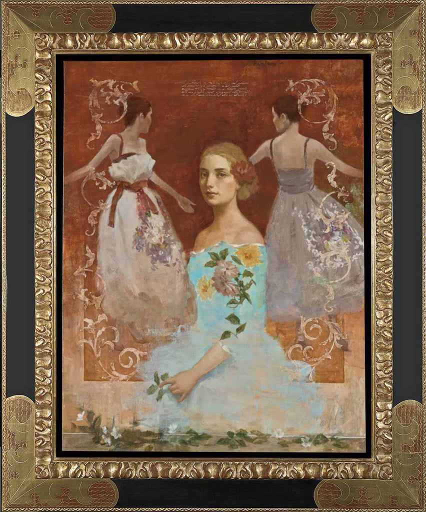 Born in Cognac, France in 1968 to scholarly portrait photographer parents with an affinity for aesthetics, it was fitting that modern figurative artist, François Fressinier, would develop a unique, enchanting style. His father’s admiration for the works of the Old Masters and his exposure to some of the world’s most historic places, along with France’s Gallo-Roman ruins and Gothic churches inclined François to explore and create figurative, symbolic artwork. In addition, his education at the Ecole Brassart in Tours afforded him the opportunity to study the drawings and paintings of old and new masters. He cites inspiration from artists like Rembrandt for showing us the soul of his sitters, Van Dyke for his elegance, Bonnard’s palette, Fuchs for the fantastic world he invented; all of which influence his style today.