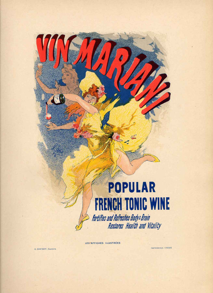 "Vin Mariani" is a lithograph created by Jules Chéret. The image size is 12" x 9" -inch. The artwork ships framed with a certificate of authenticity.