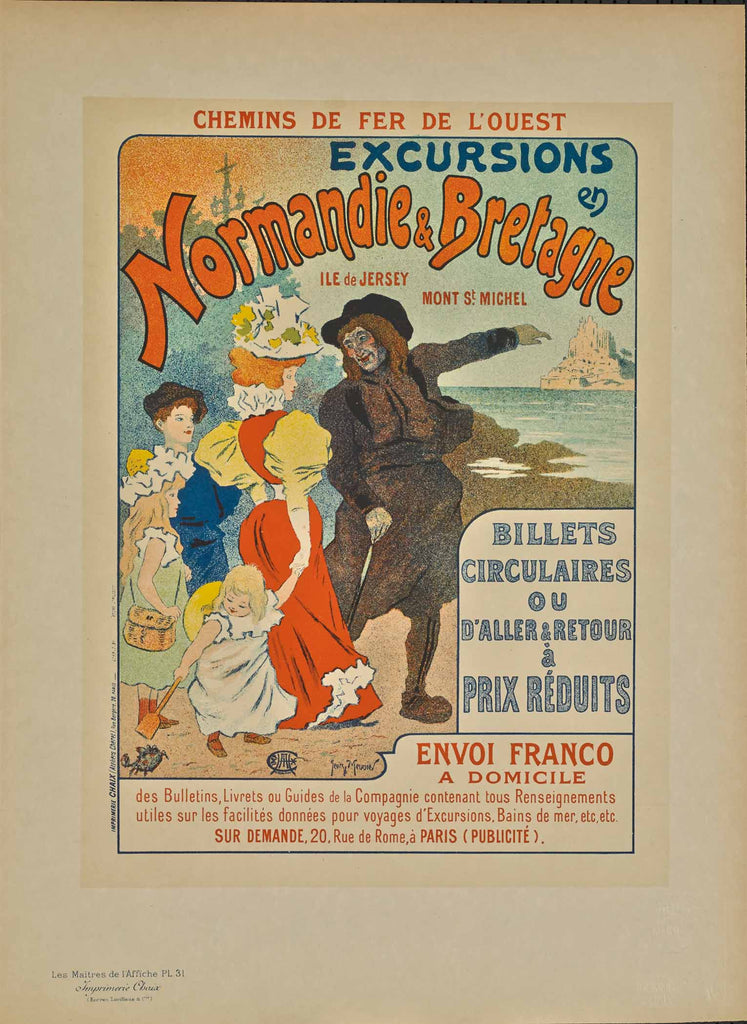 "Western Railway, Excursions... (Plate 31)" is an original stone lithograph (c.1896) created by Les Maîtres de l'Affiche.  The image size is 12 x 9 - inch.  The artwork ships framed with a certificate of authenticity.