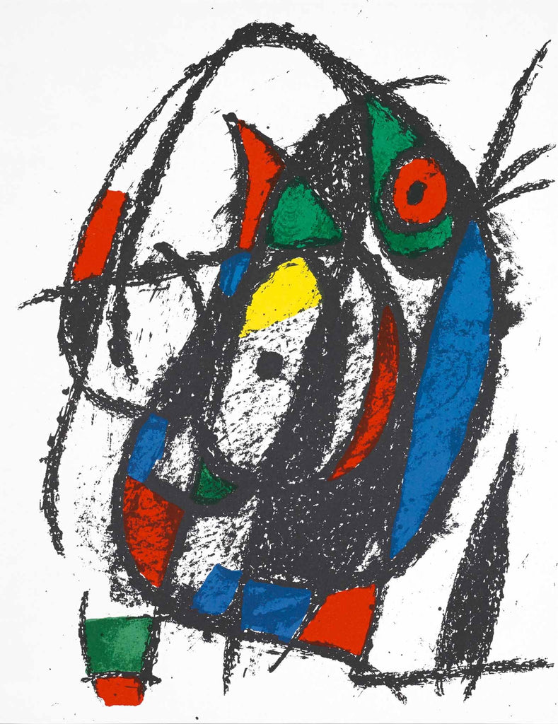 Joan Miró is regarded as one of the most original artists of the 20th century, who often worked with a limited palette, yet the colors he used were bold and expressive. His mature style evolved from the tension between his fanciful, poetic impulse and his vision of the harshness of modern life. Miró worked extensively in lithography and produced many murals, tapestries, and sculptures for public spaces. Despite his fame, he continued to devote himself exclusively to looking and creating. Joan Miró was born in Barcelona, Spain on April 20, 1893. His father was an artisan watchmaker and goldsmith. Based on his parents’ wishes, Miró attended a commercial college, then found work as a clerk in an office for a short period of time. Unfulfilled by his profession, Miró asked for his parent’s permission to allow him to attend art school in Barcelona in 1912. There, he gained great experience learning under Francisco Galí.