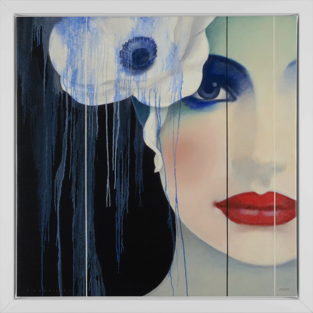 "Giving Thanks" is a digital pigment print on canvas created by François Fressinier in 2018. From the edition of 325, the artwork is signed 'FRESSINIER' lower left and annotated lower right. The canvas size is 32 x 32" and the artwork is framed in a contemporary white frame. The artwork ships framed and accompanied by a certificate of authenticity.