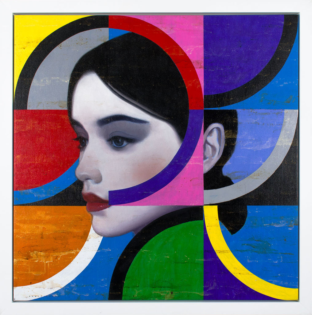 "Light Up the World II" is an oil and mixed media on canvas painting created by François Fressinier in 2022. The artwork is signed 'FRESSINIER' lower left. The canvas size is 35 x 35" and the artwork ships framed in a contemporary white frame. The artwork ships framed.