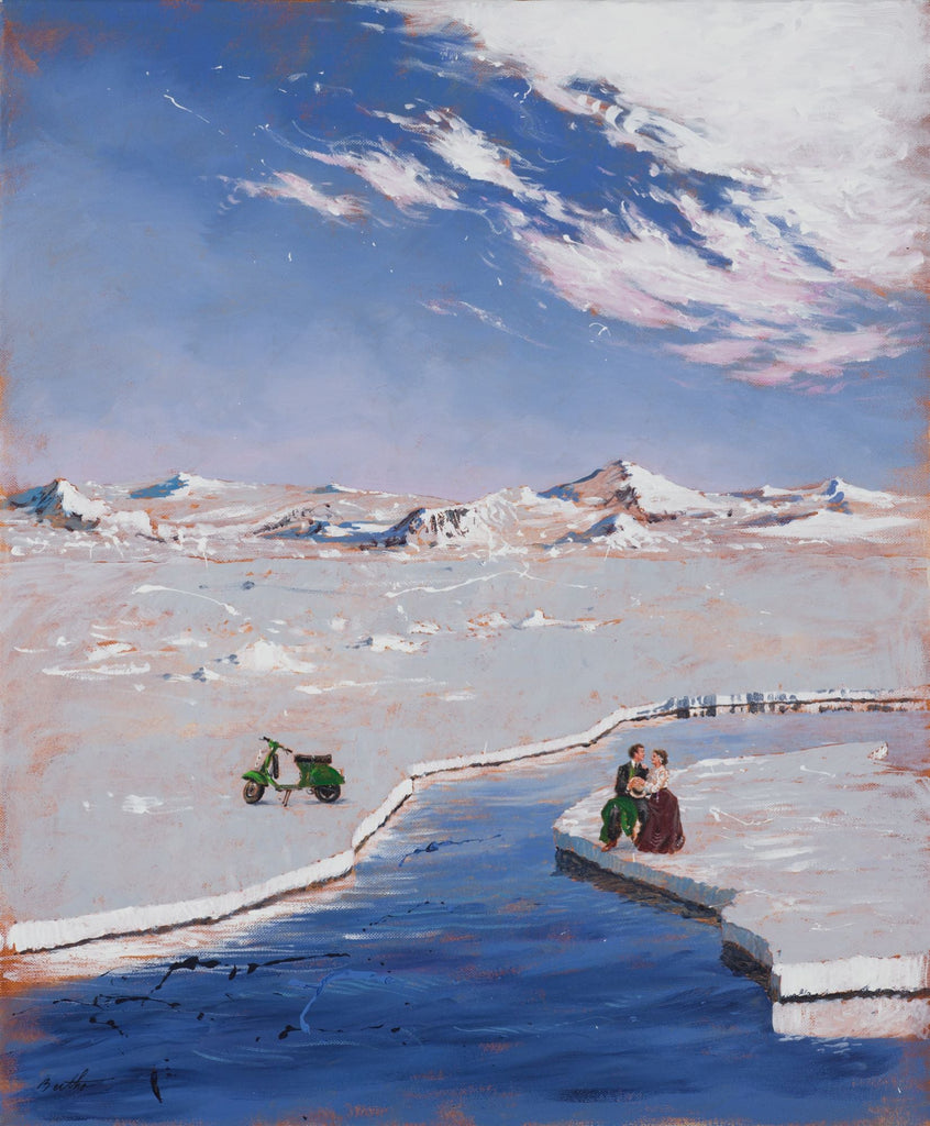 Philippe Bertho is classically trained having enrolled in art school in Reims, France in the early 1990s. There, he spent considerable time studying decorative trompe l’oeil painting. Tromp l’oeil (“to fool the eye”) is a technique used by artists to create the illusion of a 3rd dimension on a flat surface. It is obvious from Bertho’s artwork that he fools much more than the eye…he draws one in by the heart and also quite frequently by the funny bone. Despite his ability to perfectly render reproductions of masterworks, Bertho was drawn to the world of fantasy and illusion. As his style developed, he drew inspiration from renowned contemporary trompe-l’oeil artist, Jacques Poirier. In his early work, Bertho exhibited ingenuity by including unusual materials in his paintings. Employing objects that other’s found useless – corrugated iron, rusted metal boxes, old light bulbs – he was fascinated with his ability to bring his art alive by creating dimension – either by the addition of these items directly onto his canvas or later through the technique of trompe l’oeil.