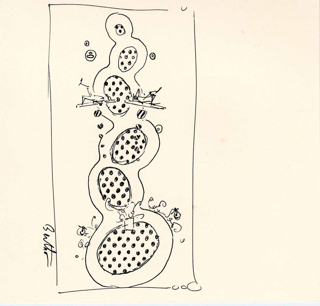 "Untitled #5" is a pen on paper drawing created by Philippe Bertho in 2013. This drawing is the original pen and ink study for a larger painting created in the same year. The drawing is signed 'Bertho' lower left. The image size is 6 x 6" and the artwork is framed in a contemporary gold-tone frame. The artwork ships framed.