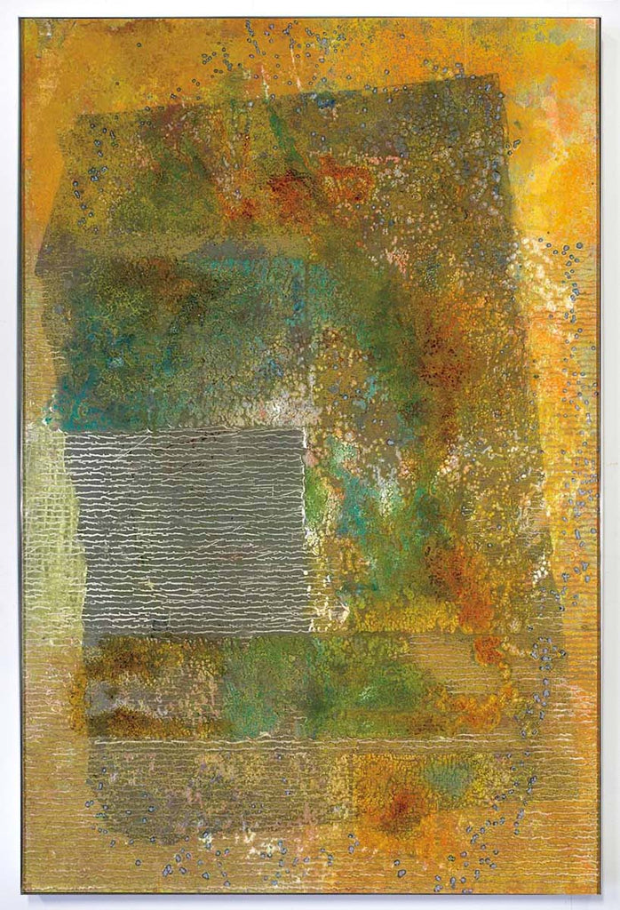 "Untitled (019r)" is an acrylic, urethane and toner on etched acrylic panel painting created by Darren Goins in 2014. The canvas size is 72 x 48". The artwork ships framed.