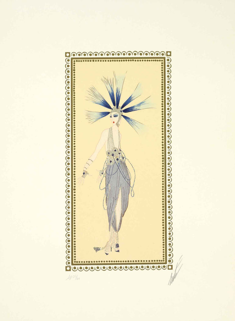Erté was born Romain de Tirtoff in St. Petersburg, Russia on November 23rd, 1892 and was raised amidst Russia's social elite. At the age of five he created an evening gown for his mother and managed to persuade the adults to craft it, they were astounded by the results. In 1912, Romain left St. Petersburg for Paris at the age of nineteen with the aim of becoming an artist. After working with Paul " Le Magnifique" Poiret on several theatrical productions Romain, still under the pseudonym of Erte, began to work more independently. He hand-crafted original costume and fashion designs for many of the era’s most renowned actresses, including Joan Crawford, Lillian Gish, Marion Davies, Anna Pavlova, Norma Shearer, and others. His masterpieces for the stage included extravagant production designs at venues such as New York’s Radio City Music Hall, the Casino de Paris, and the Paris Opera. In 1915 he began his long professional relationship with Harper's Bazaar and created 240 covers for the esteemed magazine. For 6 months in 1916, Erté simultaneously worked with Vogue as well. As a result of his highly publicized success, Erté would later be called the father of the ‘Art Deco’ movement.