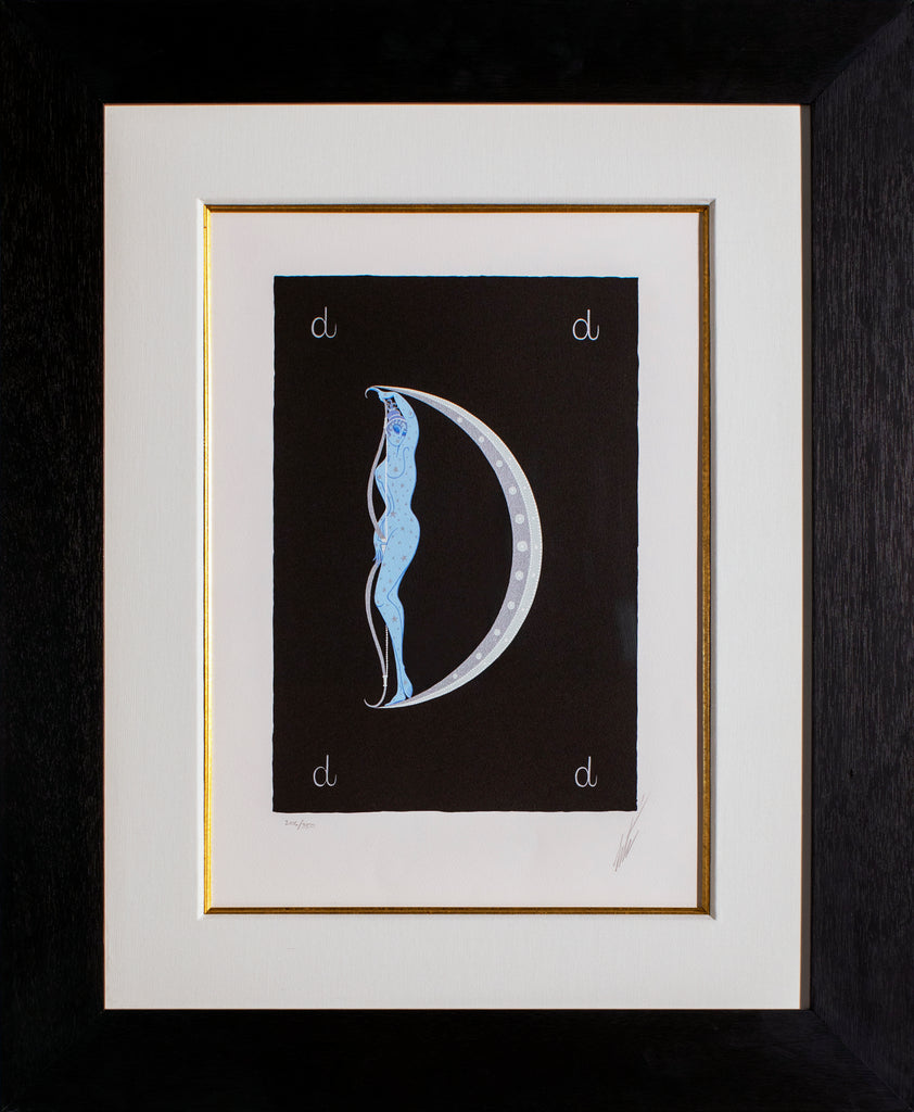 "Letter D" is a lithograph and serigraph created by Erté for his 1976 'Alphabet' suite. From the edition of 491, and the artwork is signed 'Erté' lower right. The image size 15.75 x 10.5" and the artwork is framed in a contemporary black frame. The artwork ships framed and accompanied by a certificate of authenticity.