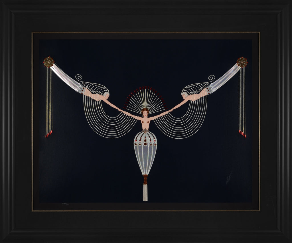 Erté was born Romain de Tirtoff in St. Petersburg, Russia on November 23rd, 1892 and was raised amidst Russia's social elite. At the age of five he created an evening gown for his mother and managed to persuade the adults to craft it, they were astounded by the results. In 1912, Romain left St. Petersburg for Paris at the age of nineteen with the aim of becoming an artist. After working with Paul " Le Magnifique" Poiret on several theatrical productions Romain, still under the pseudonym of Erte, began to work more independently. He hand-crafted original costume and fashion designs for many of the era’s most renowned actresses, including Joan Crawford, Lillian Gish, Marion Davies, Anna Pavlova, Norma Shearer, and others. His masterpieces for the stage included extravagant production designs at venues such as New York’s Radio City Music Hall, the Casino de Paris, and the Paris Opera. In 1915 he began his long professional relationship with Harper's Bazaar and created 240 covers for the esteemed magazine. For 6 months in 1916, Erté simultaneously worked with Vogue as well. As a result of his highly publicized success, Erté would later be called the father of the ‘Art Deco’ movement.