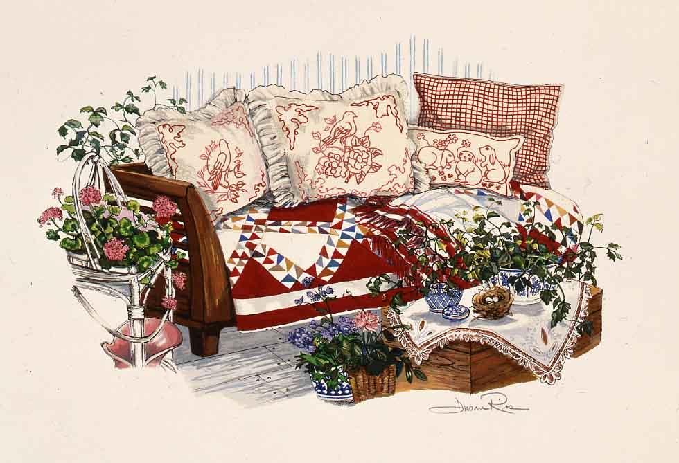 "The Wisconsin House" is a serigraph created by Susan Rios. The image size is 9 x 14 -inch. The artwork ships framed, signed and with a certificate of authenticity.