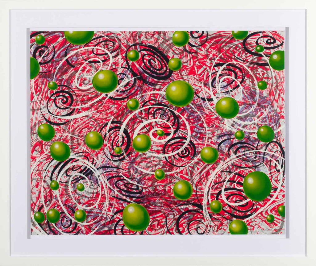 Born in Hollywood, California in 1958, Kenny Scharf lives and works in Los Angeles, California and New York, New York. Kenny Scharf rose to prominence alongside his friends and contemporaries Jean-Michel Basquiat and Keith Haring in the East Village art scene of the 1980s. One of the first artists to inject elements of street culture into the mainstream of contemporary art, Scharf has continued to pioneer projects like his Cosmic Cavern—a now legendary all-night DayGlo disco party held in the basement of a Brooklyn warehouse from 2009-2010. His paintings incorporate imagery from advertisements, cartoons, and classic Americana into exuberant compositions with an underlying subversive edge. His work has been included in numerous group exhibitions and he has had solo exhibitions at Pasadena Museum of California Art (2004); Los Angeles Contemporary Exhibitions, Los Angeles (2001); Portland Institute for Contemporary Art (1999); The Dali Museum, St. Petersburg, Florida (1997); University Galleries of Illinois State University, Normal, Illinois (1997); Museo de Arte Contemporaneo de Monterrey, Monterrey, Mexico (1996); and Museum of Art, Fort Lauderdale, Florida (1995) among other locations around the world.