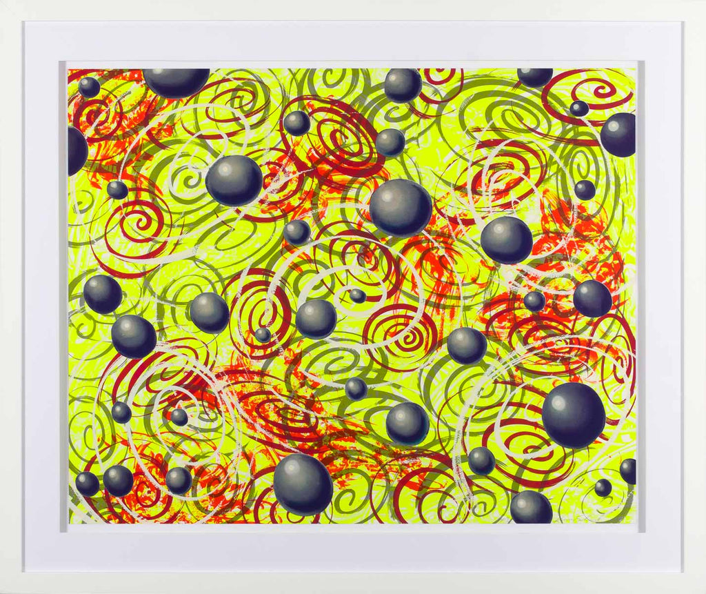 "Space Balls" is a unique trial-proof screenprint created by Kenny Scharf. The image size is 32" x 40" -inch. The artwork ships framed, signed and with a certificate of authenticity.