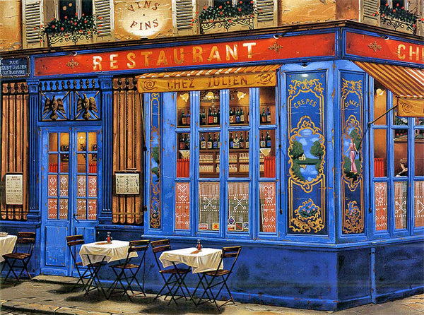 The four views presented capture the Paris of years gone by, a city full of mystery and enchantment. Kondakova lovingly paints the cobblestone streets and storefronts with her colorful palette. No present architecture could visually speak to us in such a compelling manner. The suite is comprised of “Chez Julien,” “Chez Eugene,” “Homage to Mucha,” and “Toy Store.” The “Sidewalks of Paris” suite is a beautiful addition to an already successful selection of serigraphs created by Liudmila Kondakova. Either individually or together, they take us on a stroll through the sidewalks of Paris and allow us to revel in the charm and romance of the city.