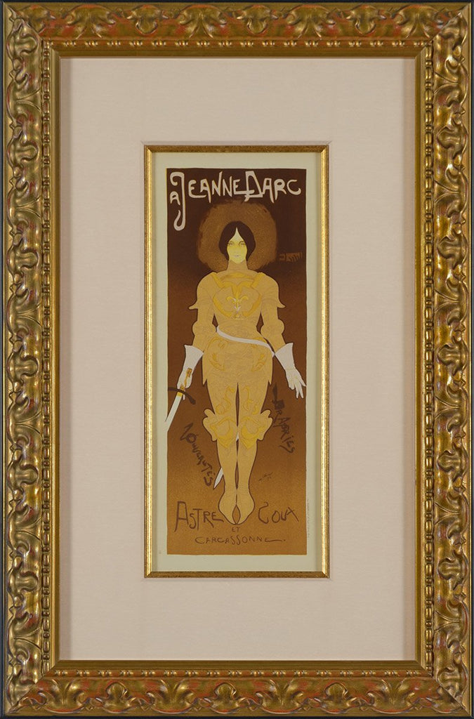 "At the Sign of Joan of Arc (Plate 130)" is an original stone lithograph (c.1898) created by Les Maîtres de l'Affiche. The image size is 14 x 6 - inch. The artwork ships framed with a certificate of authenticity.