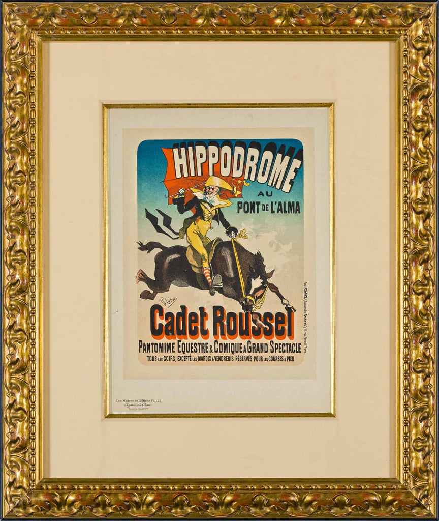 "Cadet Roussel (Plate 125)" is an original stone lithograph created by Jules Chéret in 1898 for Les Maîtres de l'Affiche. The artwork is framed with the latest archival framing techniques, and it is accompanied by a certificate of authenticity.