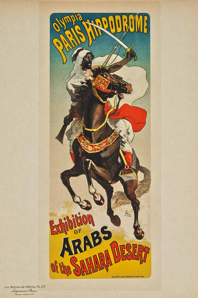 "Exhibition Of Arabs (Plate 177)" is an original stone lithograph (c.1899) created by Les Maîtres de l'Affiche. The image size is 15.75 x 6.25 - inch. The artwork ships framed with a certificate of authenticity.