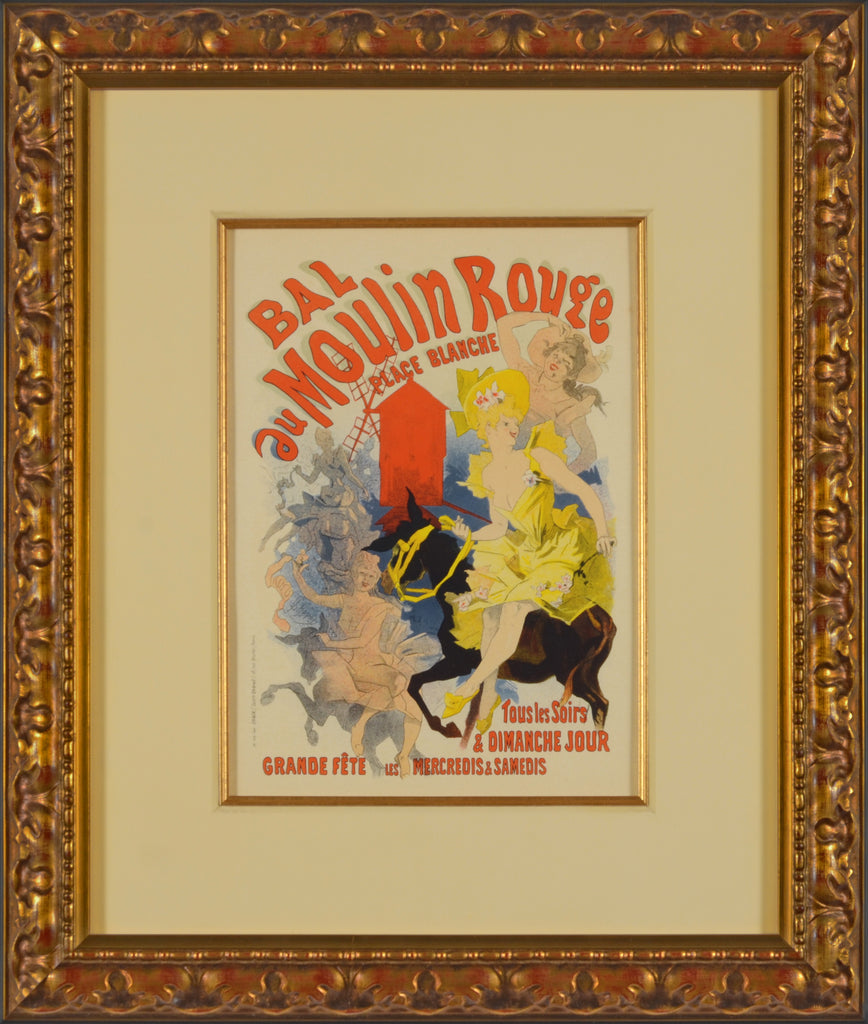 “Dancing at the Moulin Rouge (Plate 53)” was created by Jules Cheret who was the ideator of “Les Maitres De L’affiche.” “Dancing at the Moulin Rouge (Plate 53)” is a 12.75 x 9 –inch original stone lithograph created in 1897.